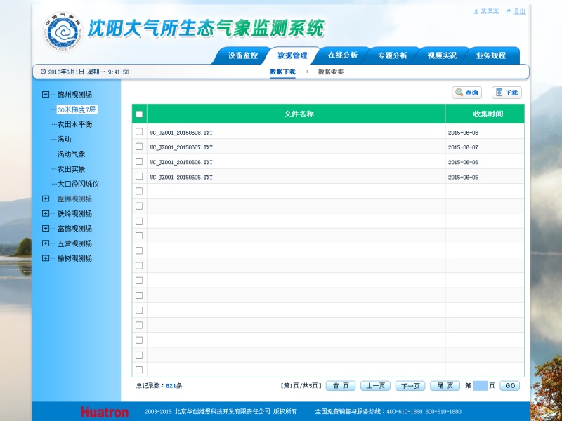 HydroMet-CERNet定位研究網絡數據平臺是華創專為滿足陸地生態系統的氣候生態環境定位觀測研究站網而設計的基于B/S、J2EE、SQL Sserver等系統架構和技術的、具有高效性、集約性、兼容性的數據綜合管理研究平臺。HydroMet-CERNet定位研究網絡數據平臺兼容各類農田、森林、草地、湖泊和海洋生態系統的定位研究站,并按照CERN統一的監測規范標準,對生態系統的狀況和水分、土壤、大氣及生物因子進行規定項目的長期監測記錄和分析管理。這種長期的動態監測,可以產生大量系統的、可比的、規范的數據,為研究以各類生態系統可持續發展為目標的高產、高效的優化模式提供理論依據,從而達到科學管理各類生態系統的目的。
