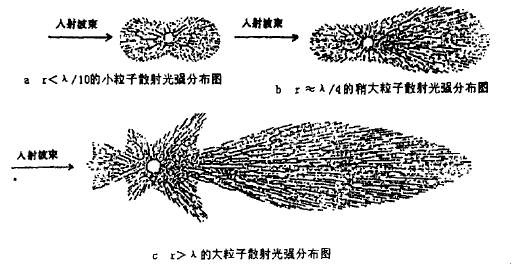 對一個散射粒子而言,散射光的分布是三維空間的函數,散射輻射能量的空間分布具有顯著的散射方向性,并可表示為散射光強分布圖形。