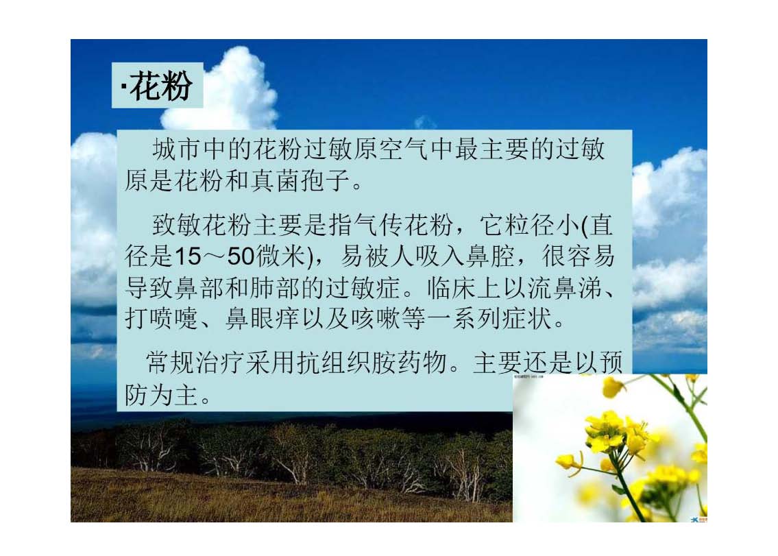 花粉過敏癥是一種嚴重危害人體健康的常見病和多發病。花粉過敏一方面,空氣污染可以通過直接影響致敏原,例如花粉粒(花粉上的酶,使花粉粒外壁易脆,暴露出更多的變應原分子)增加花粉過敏的發病率。另一方面,空氣污染物也可以通過刺激氣管、黏膜或皮膚使進入人體的過敏原增加,從而加重過敏癥。 雖然花粉在大氣成分中所占的份額很小,但對人體健康的損傷是不容忽視的,花粉粒上會載帶各種空氣污染物,如PM2.5,同時花粉會與空氣中的多種化學污染物相互反應,這使得氣傳花粉引發的呼吸道疾病變得十分復雜。