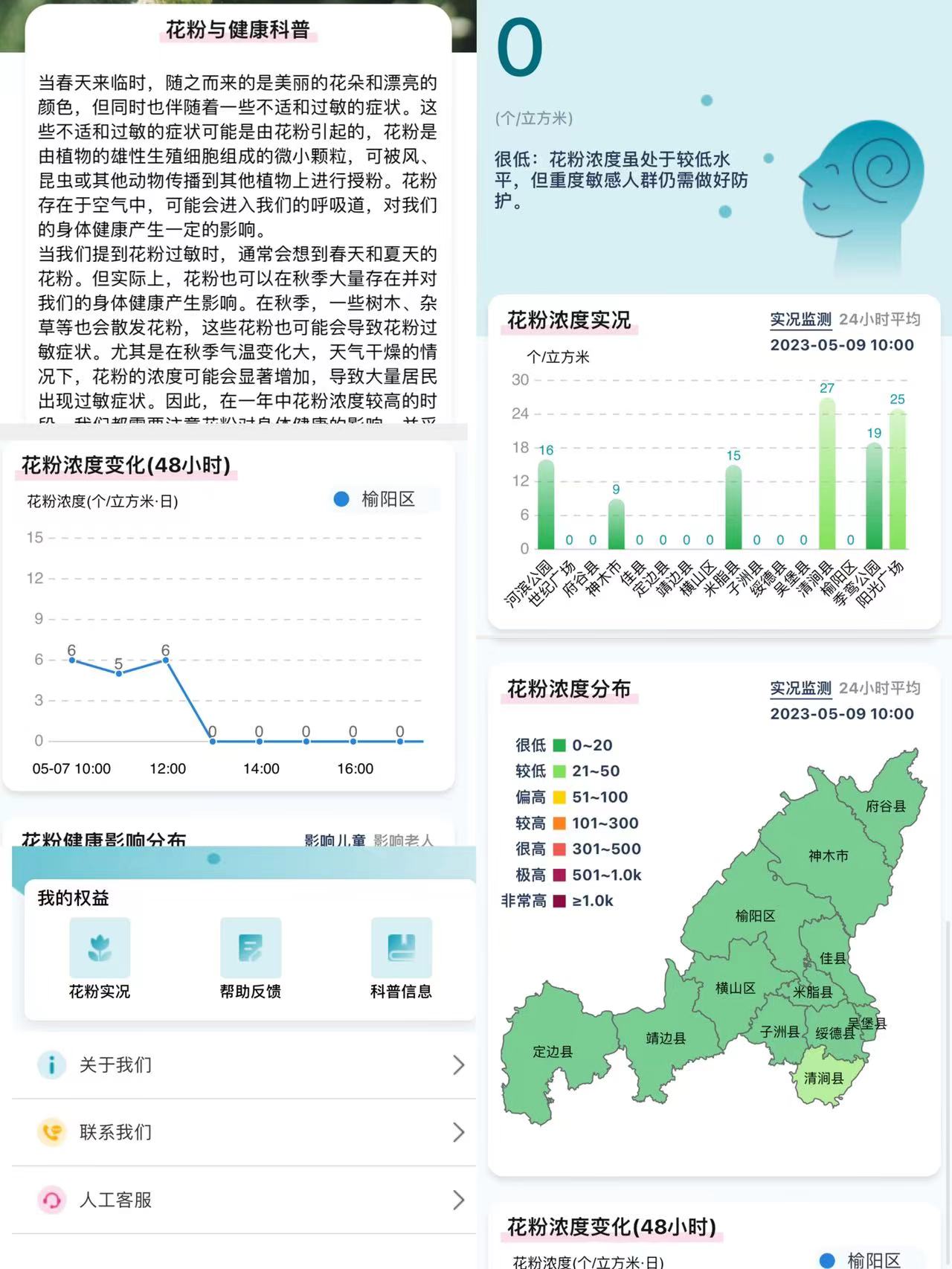 4月底,榆林市氣象局微信公眾號“花粉播報”功能上線,用戶關注后可查看當前時次的全市16個站點的花粉濃度實時監測數據、花粉濃度全市分布圖以及各站點的過去48小時監測數據變化情況以及科普知識等相關內容,并在榆林氣象微博、天氣預報影視節目每日三次發布全市花粉濃度監測情況。目前,榆林市氣象局已啟動基于花粉自動監測設備的花粉濃度預報研發工作,建立花粉預報模型后將提供適應榆林本地的花粉濃度預報,為本地過敏人群做好過敏防護提供服務。